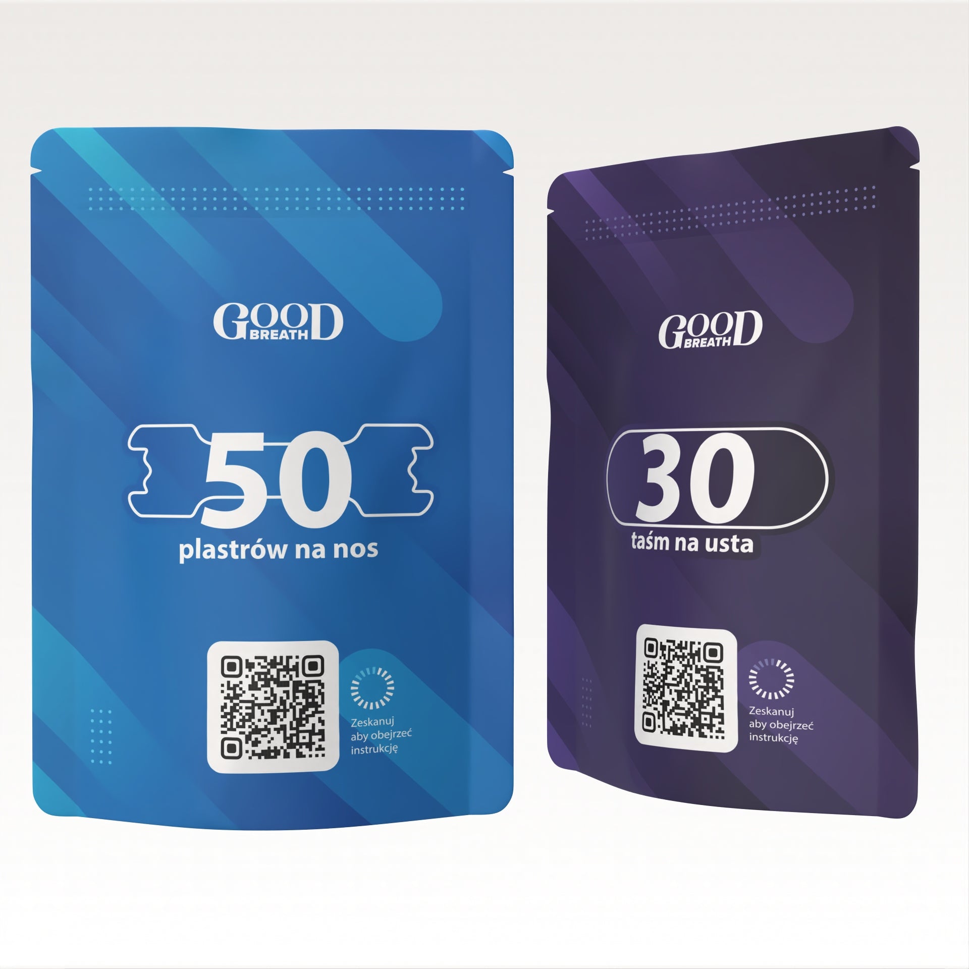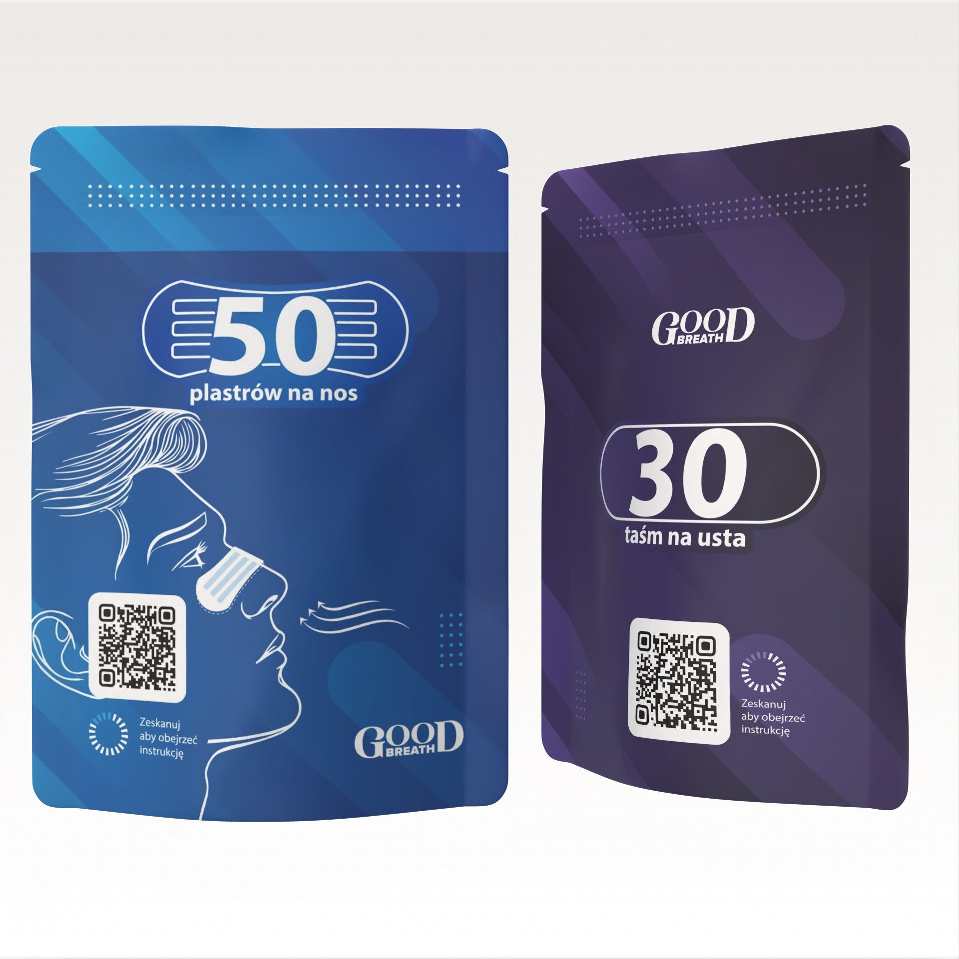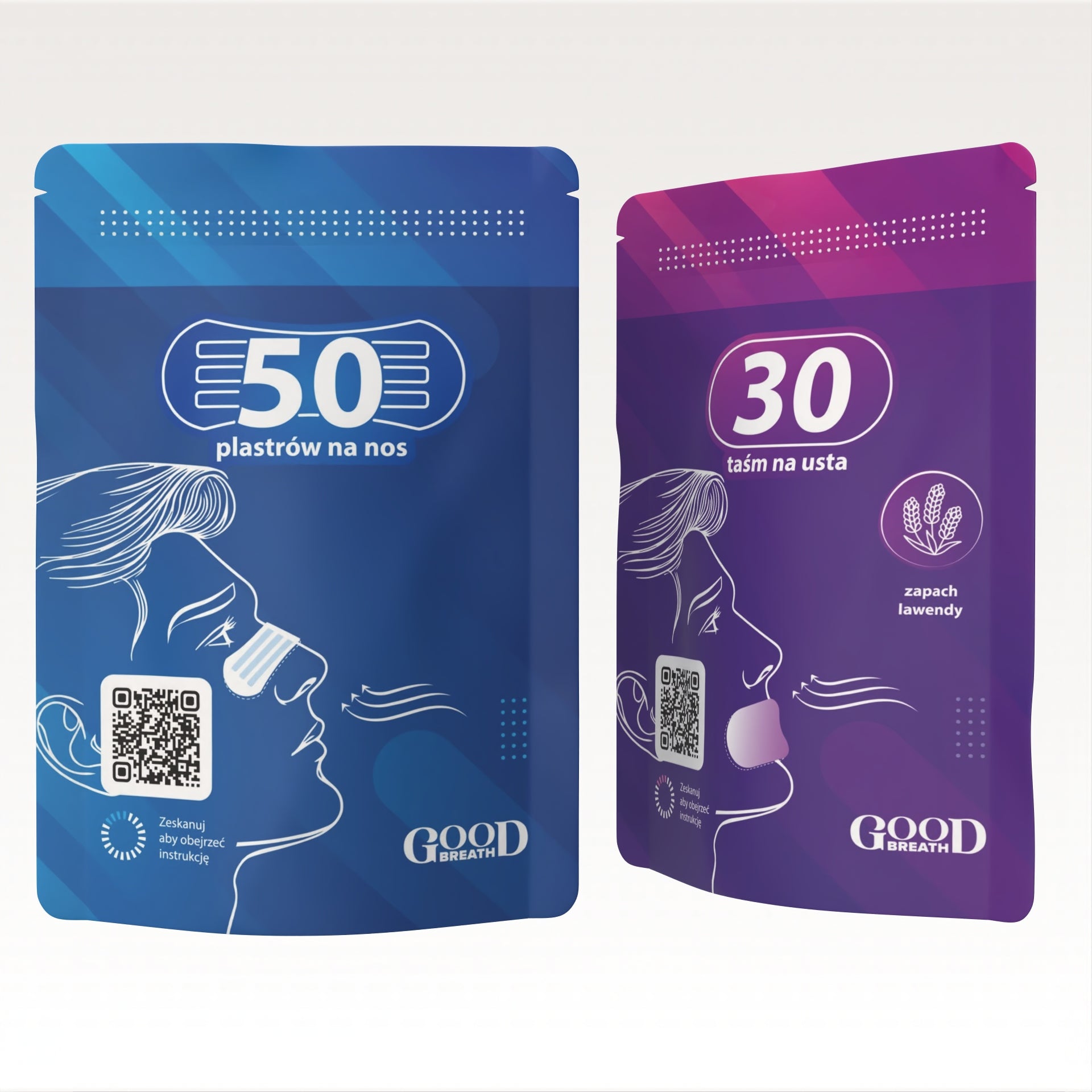 Zmęczony chrapaniem lub trudnościami z oddychaniem? Good Breath przychodzi z pomocą! Nasze taśmy na usta zapewniają cichy i spokojny sen, a plastry na nos - łatwość oddychania, zarówno podczas aktywności w ciągu dnia, jak i w nocy. Idealne dla osób aktywnych, jak i tych, którzy po prostu pragną lepiej spać. Dzięki Good Breath, każdy oddech staje się głębszy, a każda noc spokojniejsza.